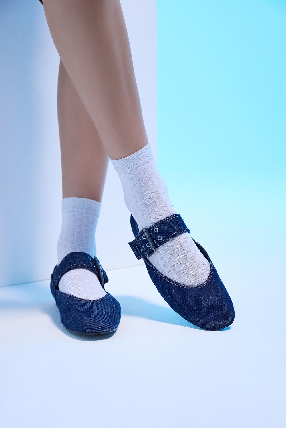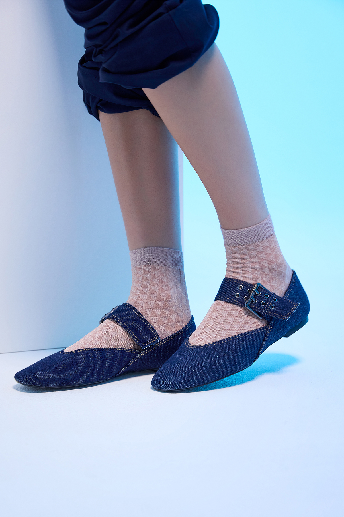 Calzino moda con viscosa con motivo geometrico. Bordo comfort doppio con viscosa e lamè. Punta e tallone anatomici con viscosa e lamè