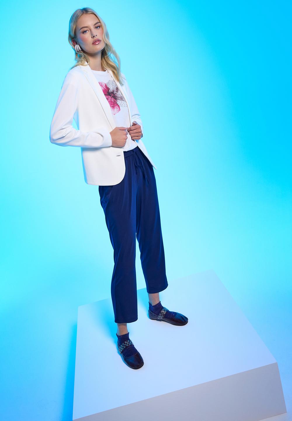 Giacca moda in tessuto milano tinta unita con viscosa. 2 bottoni di chiusura sul fronte.